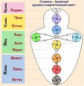 Третьим аспектом антропологического учения староверов-инглингов является учение о чакрах (всего согласно их учению 37 чакр, но говорят староверы-инглинги только о 9, остальные даже не называются). Вот как оно представляется графически: