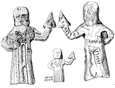 Еще одним – поистине уникальным – памятником «балтийской» Славянской руники являются надписи на культовых предметах из разрушенного в середине XI века в ходе германского завоевания Славянского храма Радегаста в Ретре. На этих предметах стоит остановиться чуть более подробно.