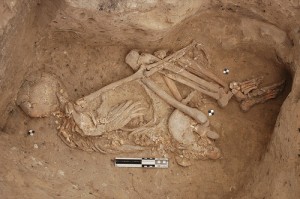 Скорченность трупов сохраняется до рубежа бронзового века и железного. На смену скорченности приходит новая форма погребения: покойников хоронят в вытянутом положении. Но самая разительная перемена в погребальном обряде связана с появлением кремации, полного сожжения трупов.