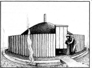 Славянское погребальное сооружение по раскопкам Боршевских курганов (реконструкция). (По А.З. Винникову, А.Т. Синюук)